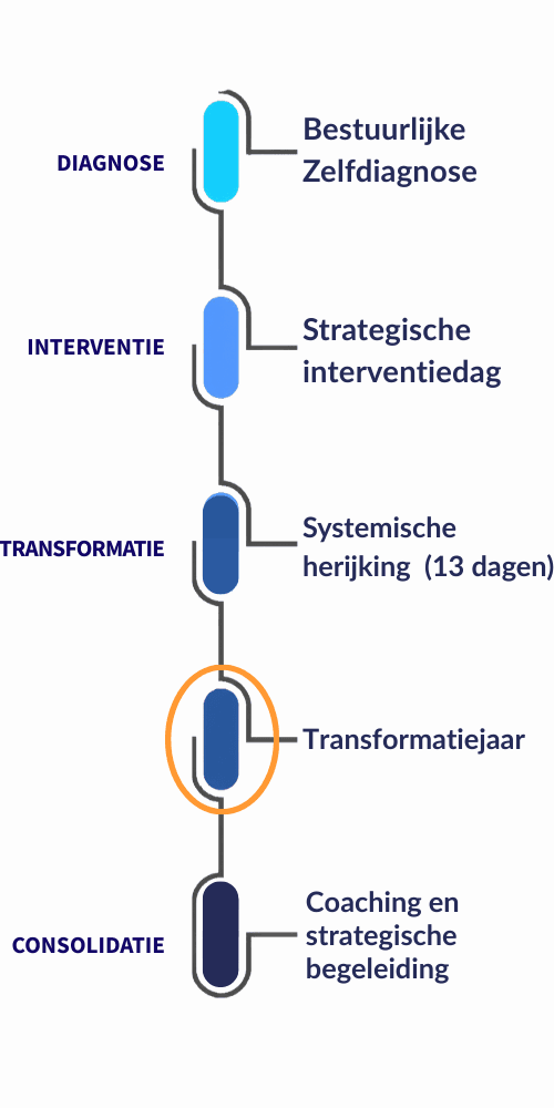 Binnen het transformatiejaar wordt onderscheid gemaakt tussen twee niveaus van leiderschap: